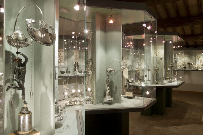 A value in its own right is that, in the Oil as light section, of the collection of oil lamps from the Nuragic to the Neoclassical age, where there are beautiful Renaissance bronzes, Florentine oil lamps and a beautiful group of refined lumière (living room lamps with sculptures at the foot) Roman with author names, you want the creator, you want the silversmith. Oil as the common denominator of the three Mediterranean monotheistic religions (Christianity, Judaism and Islam) is attested by suspension lamps, Coptic and Byzantine lamps, pilgrim ampoules, Islamic lamps and the three symbolic lamps of Judaism. The great importance of oil in medicine is attested by the Mesue Opera de medicamentorum.